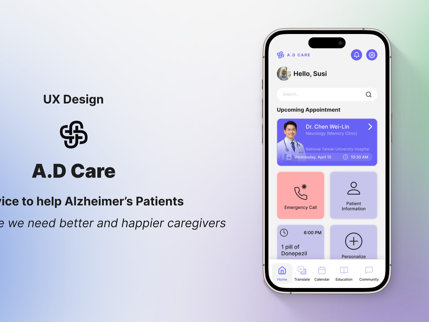 UX Design for A.D Care Application